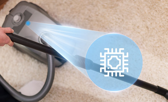 內(nèi)置灰塵檢測(cè)微系統(tǒng),根據(jù)檢測(cè)到的灰塵量自動(dòng)調(diào)整吸力電機(jī)的速度和吸力,保持清潔效率的同時(shí)節(jié)約能源
