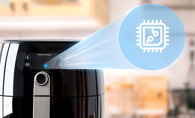 空氣炸鍋智控由主控板、顯示操作界面及TFT 智能旋鈕、WIFI 模組,語音識別,手勢識別模組組成。空氣炸鍋通過以下功能特點讓產品更加智能化,從根本上提升了用戶的便利性和體驗。手機監控空氣炸鍋行狀態;手勢識別功能;語音識別功能;TFT LCD 旋鈕屏;